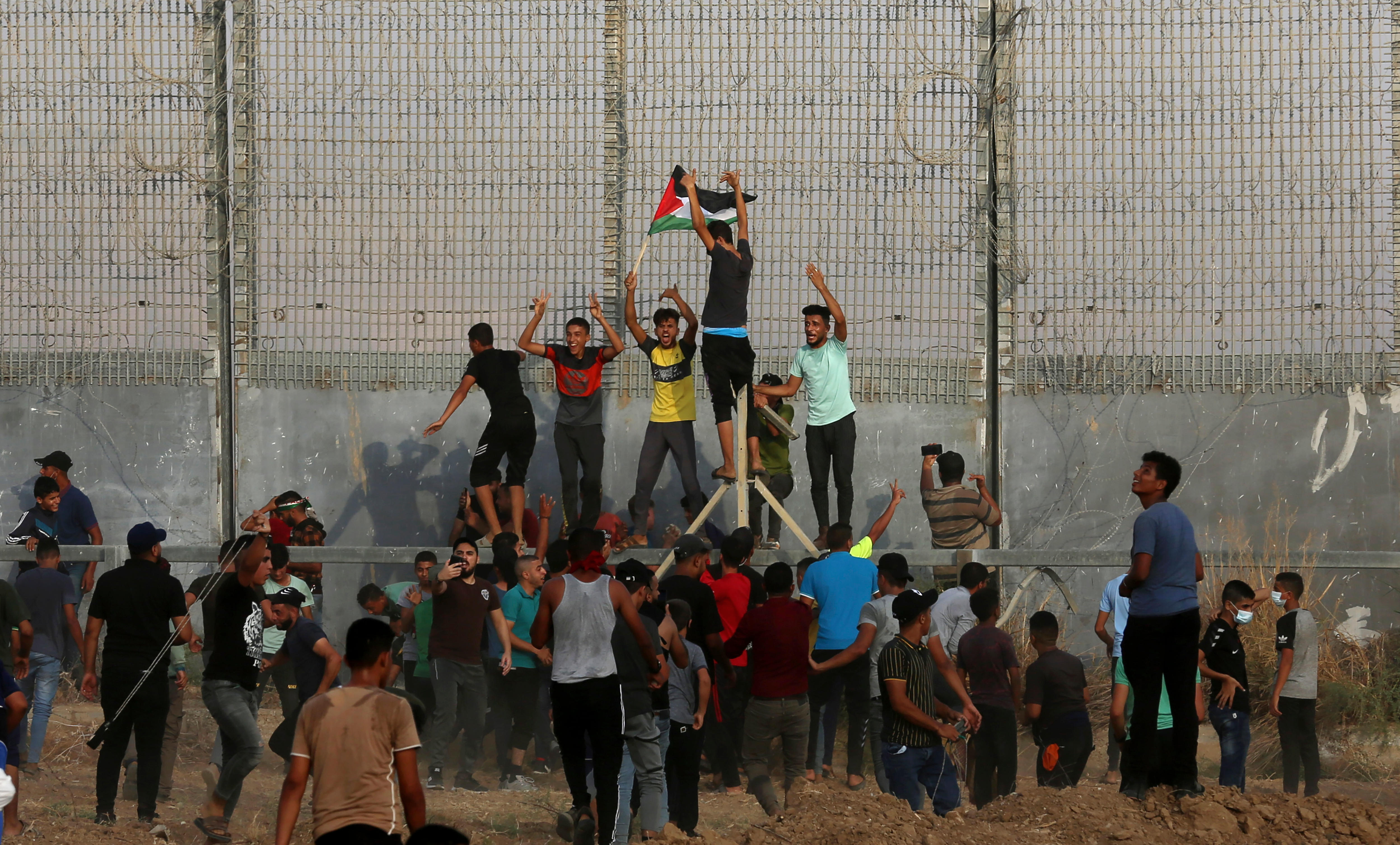 Hundreds of Palestinians gathered near the Strip’s heavily fortified border, where some tried to scale the border fence and others threw explosives towards Israeli troops, the Israeli military said.